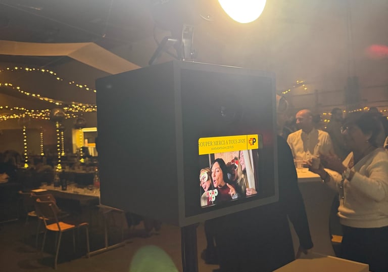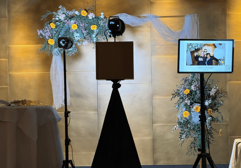 Capturez des instants mémorables grâce à notre photobooth, sans impression sur place. Toutes les photos sont automatiquement enregistrées dans une galerie en ligne sécurisée, accessible facilement pendant et après votre événement.